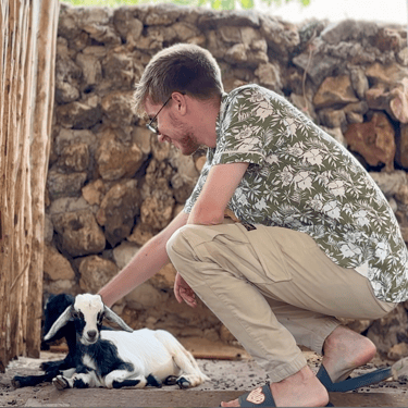 Finally, I began working with Robert on the Ecotours that welcome visitors to the Assalam campus. These tours invite them to discover the organization’s work firsthand and experience the wide range of initiatives it supports. We begin by visiting the school, where hundreds of children from nearby villages receive free education. Then, we move to the permaculture area, where we explain how we live sustainably from what we cultivate and the animals we raise with care and respect. Next comes the Art Department, where children and youth learn music, traditional dance, and theatre. We also showcase the Empowerment area, where young people are trained in soap-making, wood carving, pottery, electricity, carpentry, and sewing. Finally, the tour ends with the Community section — where volunteers and locals work hand in hand — and concludes at the Jetsea, a wooden balcony overlooking the ocean, where the sunset offers a breathtaking reminder of the beauty and purpose of our work here.