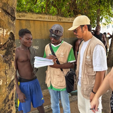 illness, we were able to visit the school and confirm his enrolment status. Afterwards, we met a family member who informed us that he had stayed home that day because he was unwell, but that he normally attends school regularly, although he often feels very tired. Later, we moved to the football field in Zongo, where around twenty children aged between 11 and 18 were gathered. After introducing ourselves, we distributed clothing that had previously been sorted by size, giving each child a T-shirt, a pair of shorts, and a cap.