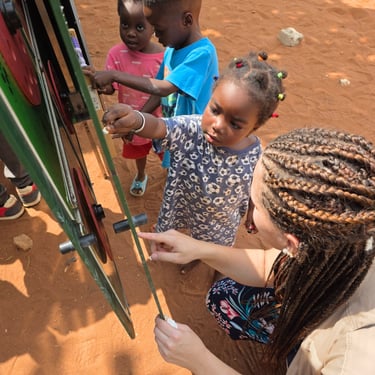 learning activities. As the session continued, additional students from the nearby public school approached the mobile school area and joined the activities out of curiosity. The interaction among different groups highlighted the capacity of the mobile school to bring together children from diverse backgrounds, making it a meaningful tool for integration and sensitization. More than 30 children gathered during the activity, which required substantial effort to distribute attention fairly across all participants. When beneficiary numbers are high, it becomes even more important to reinforce, monitor, and apply PGI principles. The volunteering team must remain particularly aware of risks related to crowd dynamics, child protection, and safe interaction practices.