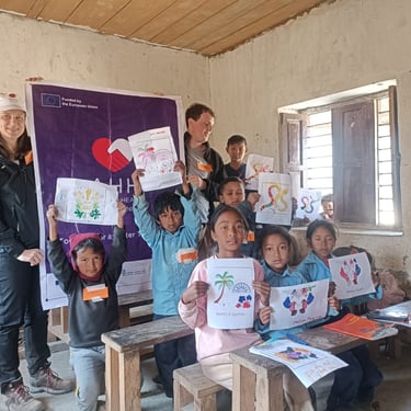 We visited Anandeshwor Basic School several times this week and spent quite a lot of time working with the children on emotions. The main idea was to help them understand why it matters to notice how they feel and to talk about it. Along the way, we also tried to support their creativity, build up their English vocabulary, and encourage them to communicate more confidently.
