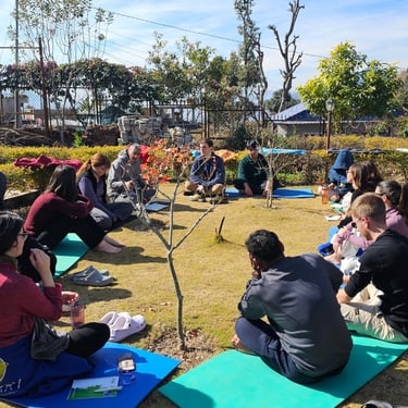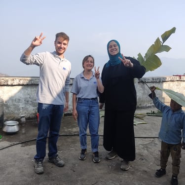 We had the opportunity to visit several key places in Kathmandu with Dinesh, one of our coordinators. It was a great moment. At Pashupatinath Temple, which is one of the most sacred for Hinduists. It’s dedicated to Pashupati, Shiva’s incarnation. The bodies of the deceased are brought to be cremated, allowing them to pass from life to death according to Hindu tradition. We then visited the Boudhanath Stupa - Tamal Jatra, a Buddhist place, where people come to express their devotion. Some places around offer a breathtaking view over the city. This visit sparked meaningful conversations about the different beliefs that coexist here in Kathmandu, and more broadly throughout Nepal.
