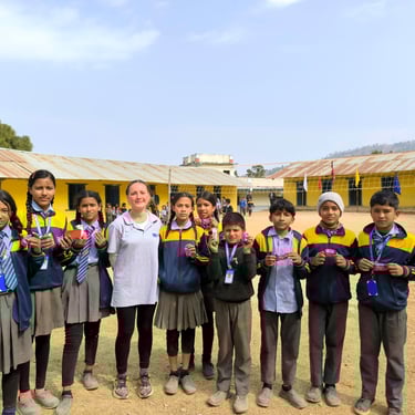 On Tuesday, Salma was able to come with us to Kalika thanks to VIN, which had arranged a jeep for her. We were really happy this was possible, especially because we had planned a treasure hunt — and taking part in it meant a lot to her. We arrived early to hide the different clues around the school. The students were divided into three teams of eight. They absolutely loved the activity! They were running everywhere, full of energy and motivation. We had also planned to involve the teachers by asking them to act as clue guardians. They really embraced their roles, which made the whole experience even more fun. As a “treasure,” we had prepared cakes, which were, of course, very well received.